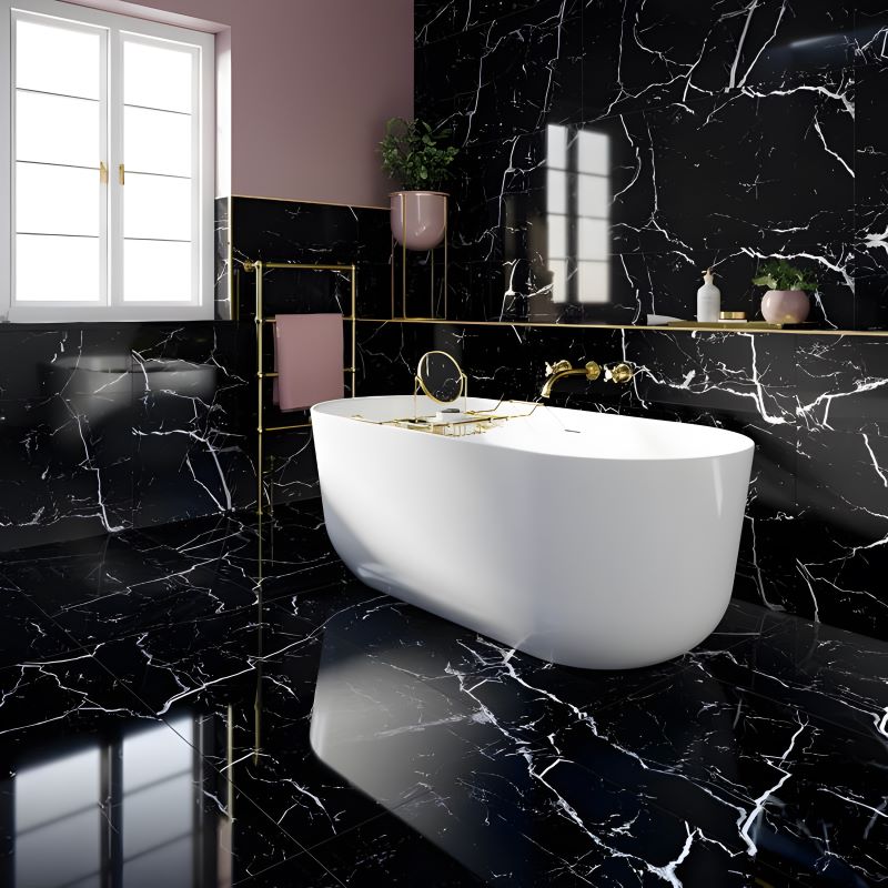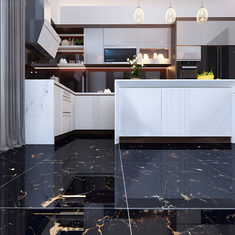 Gạch lát nền đen vân đá sang trọng và đẳng cấp lựa chọn hoàn hảo cho gia chủ mệnh Thủy, thu hút tài lộc và tạo điểm nhấn tinh tế cho không gian sống. Gạch Tây Ban Nha HLT126007TC màu đen vân dây xám, bề mặt bóng tạo hiệu ứng phản chiếu sang trọng, làm nổi bật không gian hiện đại. Họa tiết vân đá tự nhiên kết hợp nội thất tối giản giúp tổng thể vừa tinh tế vừa đẳng cấp.