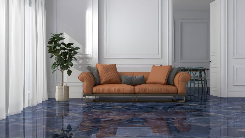 Bên cạnh việc lựa chọn màu bản mệnh, khi chọn gạch lát nền nhà cho người mệnh Mộc, bạn cũng nên ưu tiên các màu sắc thuộc hành Thủy như xanh dương, đen… bởi theo ngũ hành, Thủy sinh Mộc – nước giúp nuôi dưỡng và thúc đẩy sự phát triển của cây cối, từ đó mang lại may mắn và tài lộc cho gia chủ.. Gạch màu xanh dương, xanh biển mang lại cảm giác mát mẻ, nhẹ nhàng, phù hợp với phòng khách hoặc phòng ngủ. Trong khi đó, xanh than và đen tạo chiều sâu, mang vẻ sang trọng, cá tính, đặc biệt thích hợp cho không gian hiện đại và tối giản.