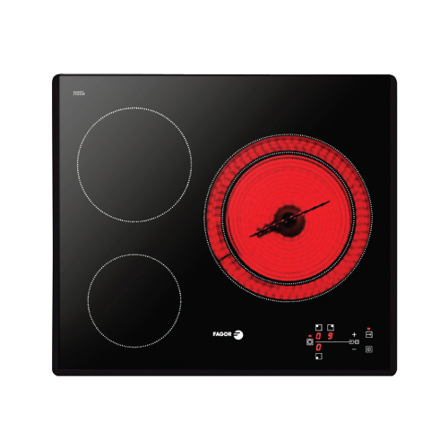- 3 vùng nấu: 2 bếp High Light tiêu chuẩn, 1 siêu bếp Double High Light 2 vòng đốt
