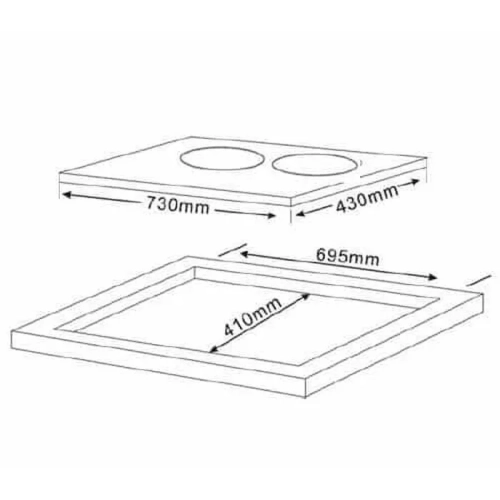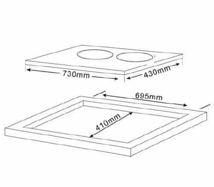 Mặt lắp âm: 695 x 410 mm
