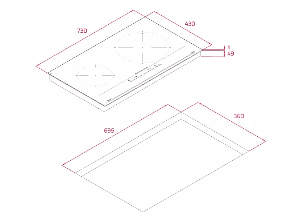 • Điều khiển cảm ứng trượt đa điểm • 2 vùng nấu: - 1 zone Ø 280 mm - 1 zone Ø 185 mm • Mặt kính Schott ceran • Công suất: 3600W • Kích thước: 730x430x53 • Xuất xứ: Thổ Nhĩ Kỳ