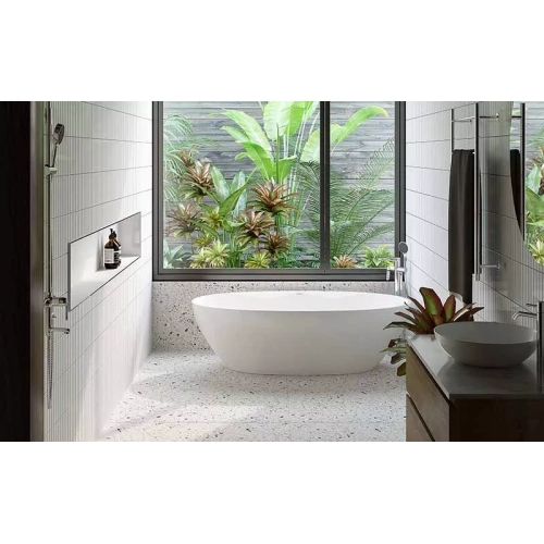 Bồn tắm đá Platinum P.61.350 đem đến cảm hứng sang trọng và hiện đại nhờ thiết kế bề mặt nguyên khối không mối nối. Vật liệu đá nhân tạo (Solid Surface) có khả năng tái tạo giúp cho việc làm mới sản phẩm đơn giản hơn. Bề mặt sản phẩm không có lỗ kim, vừa ngăn không cho chất bẩn bám vào, vừa tăng độ bền đẹp theo thời gian.
