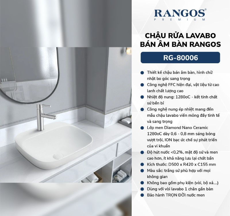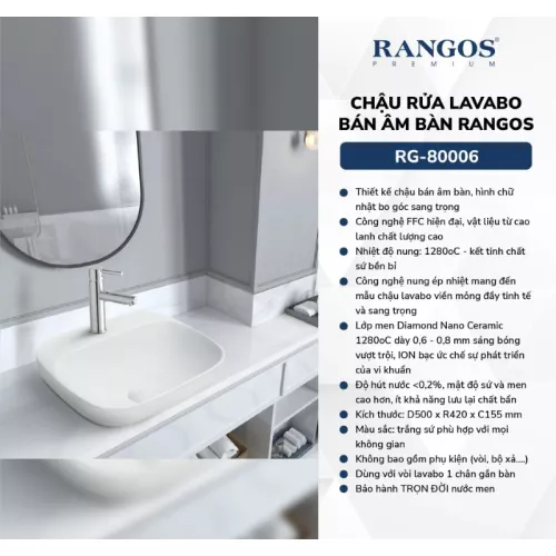 Chậu Rửa Mặt Bán Âm Bán Rangos RG-80006