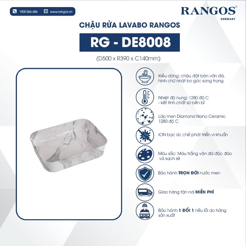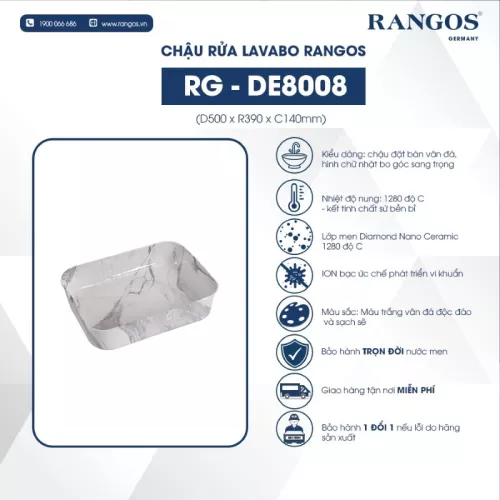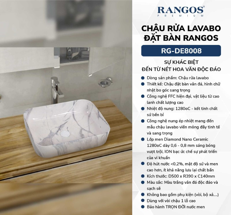 Chậu Rửa Mặt Đặt Bàn Rangos RG-DE8008
