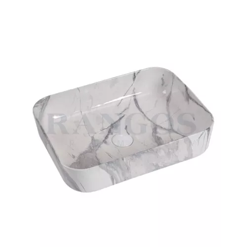 Thiết kế chậu đặt bàn vân đá, hình chữ nhật bo góc sang trọng