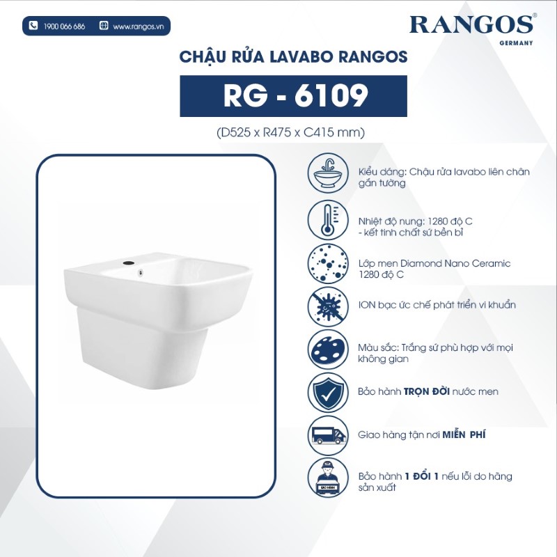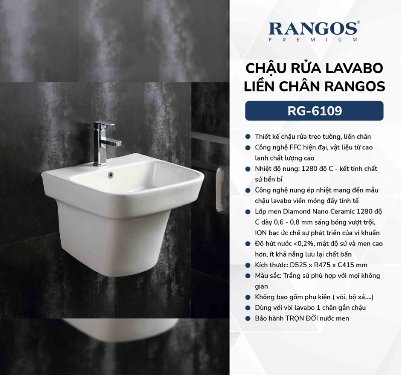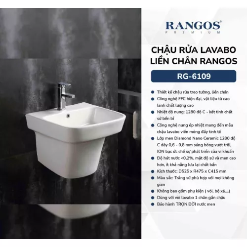 Chậu Rửa Mặt Liền Chân Rangos RG-6109