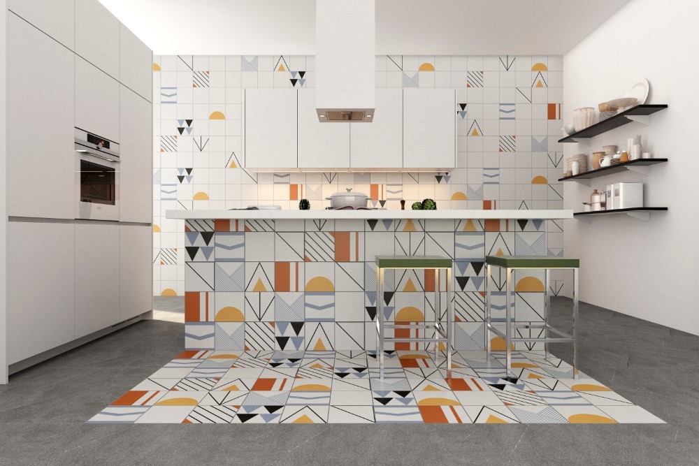Gạch 20x20 Á Mỹ 21.A.220.S068 hoạ tiết hình học ốp lát trang trí phòng bếp