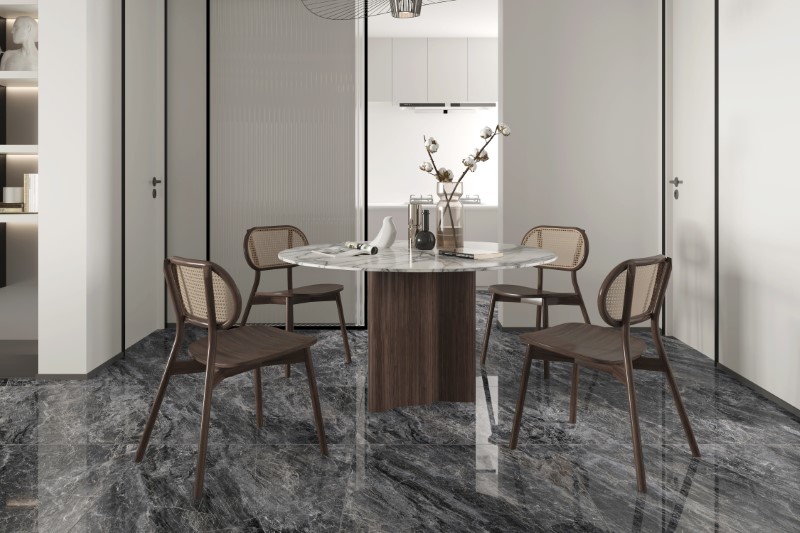 Sản xuất: AMYGRES Xương : Porcelain Thương hiệu: Calido Bề mặt : Men bóng Vân gạch: Vân Đá Tự Nhiên Kích thước: 80x80cm Màu sắc: Xám
