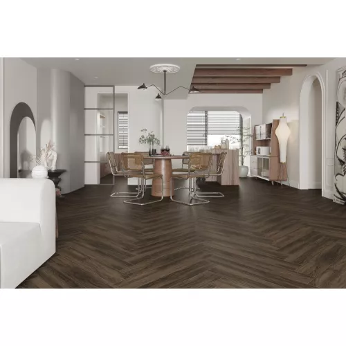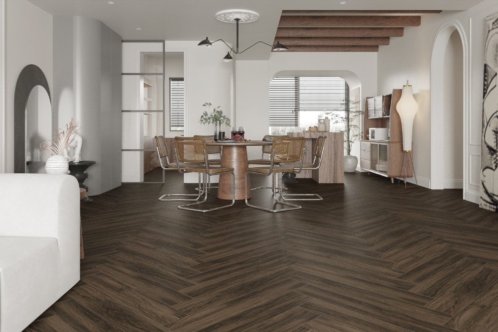 Màu nâu đậm mang lại chiều sâu và sự sang trọng cho không gian, dễ dàng kết hợp với nhiều phong cách nội thất khác nhau. Từ những không gian mang phong cách hiện đại tối giản đến các thiết kế cổ điển, mẫu gạch này đều giúp tôn lên vẻ đẹp tổng thể của công trình.
