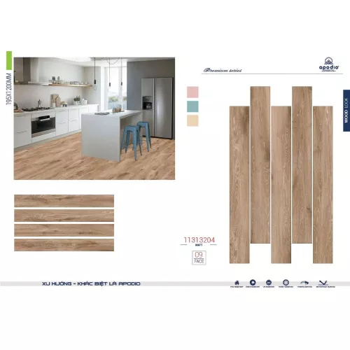 Khác với sàn gỗ thông thường, gạch vân gỗ Apodio 11313204 có khả năng chống chịu với thời tiết khắc nghiệt, dù là thời tiết nồm ẩm cao. Bề mặt được phủ lớp men matt cao cấp, ngăn không cho ánh sáng đi qua, không sợ sự phản chiếu gây khó chịu cho người nhìn.