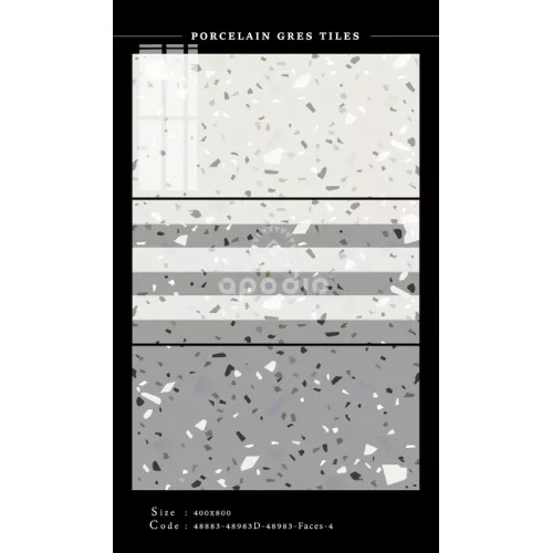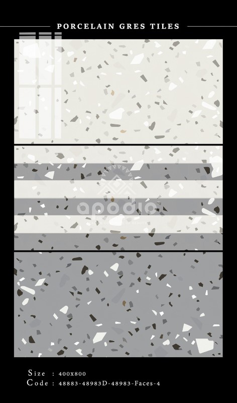 Sự kết hợp hoàn hảo của 3 sản phẩm gạch Apodio mã 48883-48983-48983D họa tiết Terrazzo đem lại không gian ấn tượng với những hiệu ứng hạt độc đáo, chắc chắn sẽ là sự lựa chọn đáng chú ý.