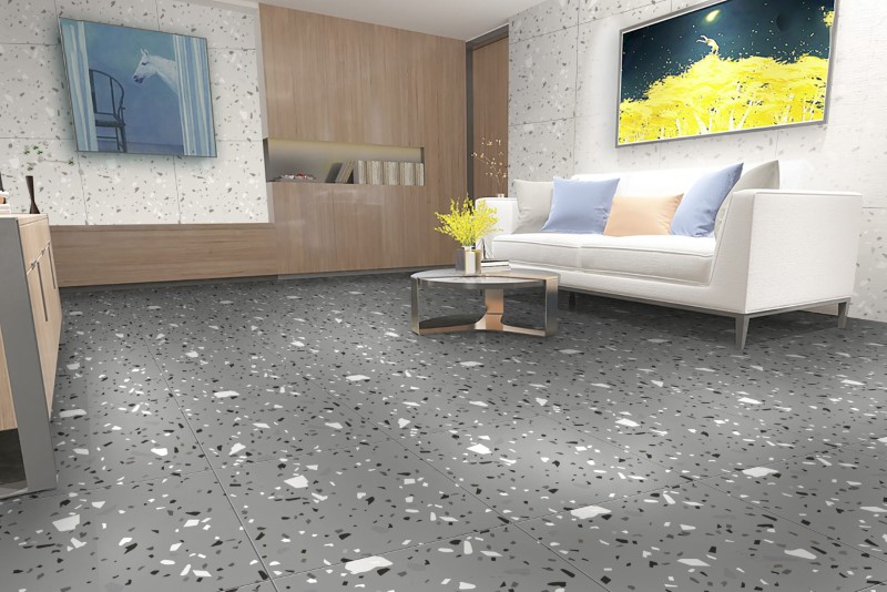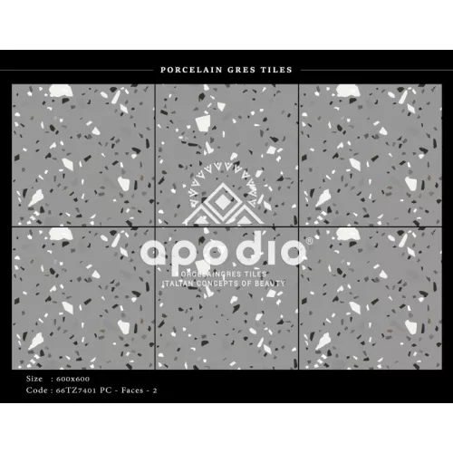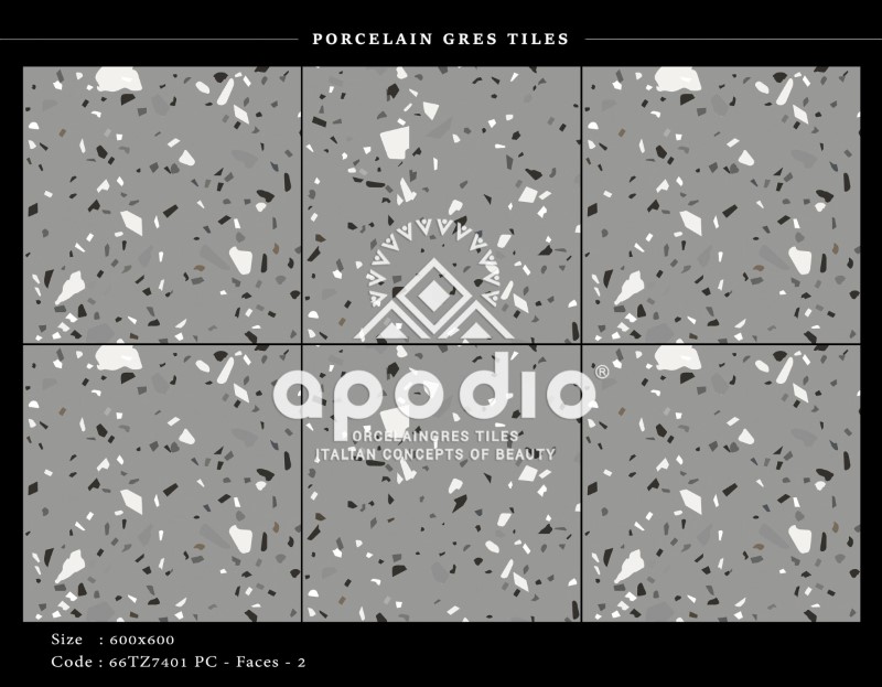 Gạch 60x60 vân terrazzo xám xi măng bề mặt tinh thể Apodio 66TZ7401