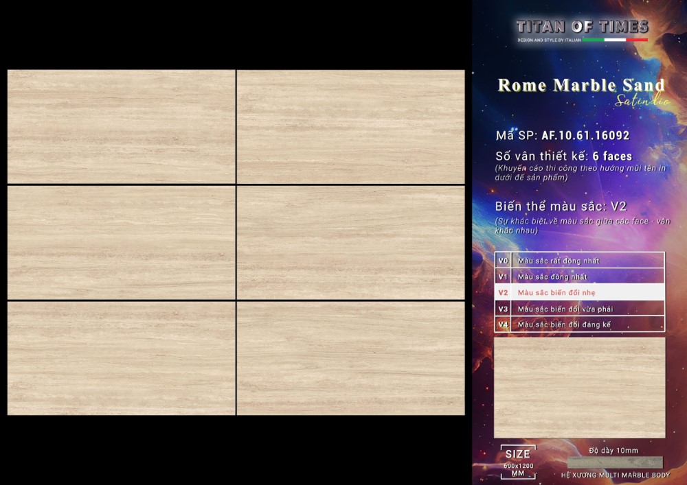 Gạch độ dày 10mm, cấu tạo xương gạch được sử dụng công nghệ in vân trong xương. Bề mặt men lên tới 6 faces khác nhau. Mang tới một không gian vô cùng độc đáo, hiện đại cho bất kì khu vực nào trong nhà bạn.