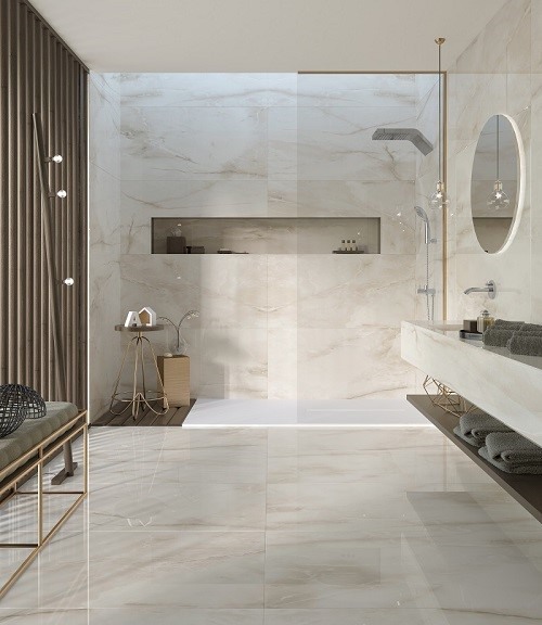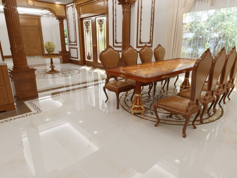 Họa tiết vân gạch với sự kết hợp hài hòa của gạch vân đá và màu sắc trắng tinh khiết tạo ra một không gian sống trong lành và rộng rãi. Men gạch bóng lấp lánh như là ánh sáng chiếu sáng trên bề mặt, tạo điểm nhấn sáng lên vẻ đẹp tinh tế và sang trọng của sản phẩm.