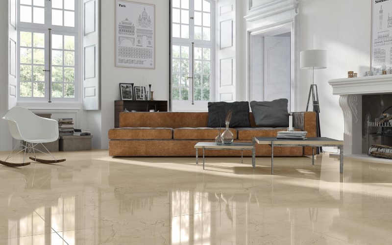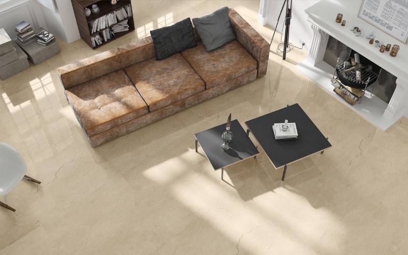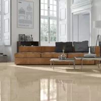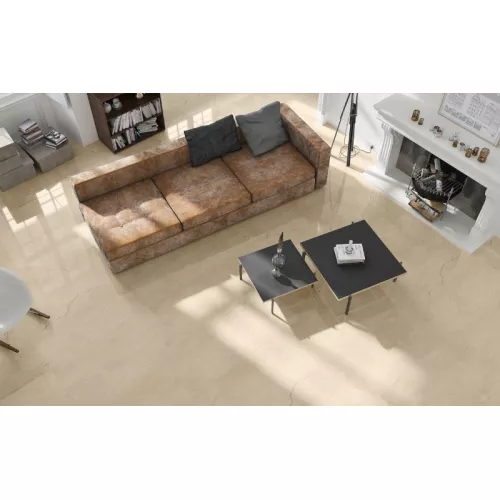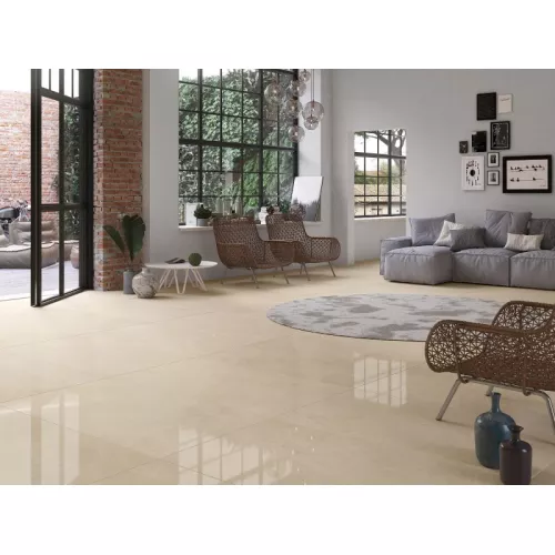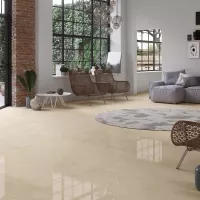 Họa tiết vân đá tự nhiên trên bề mặt gạch là những đường nét êm đềm, nhẹ nhàng như những cơn gió mùa xuân, tạo nên một không gian yên bình và dễ chịu. Màu sắc vàng nhạt ấm áp và trấn an, kết hợp cùng bề mặt men bóng, tạo ra một hiệu ứng ánh sáng êm dịu và lôi cuốn, khiến cho không gian trở nên mềm mại và đằm thắm hơn.