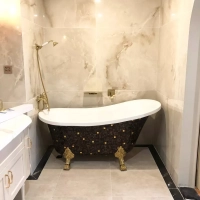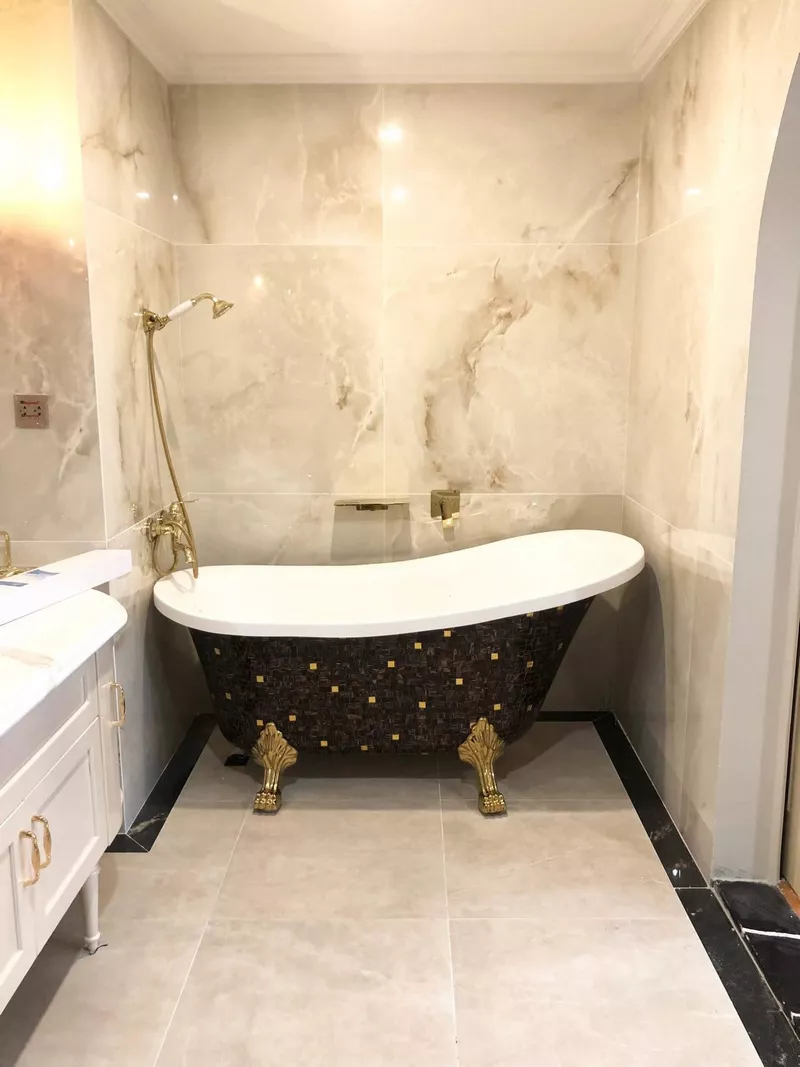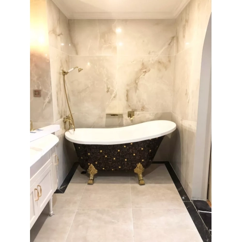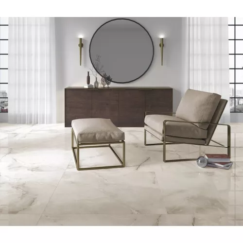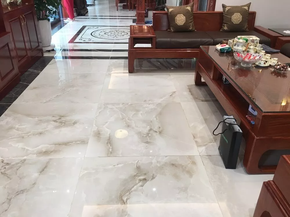 Với vân đá tự nhiên được tái tạo trên bề mặt gạch, sản phẩm mang lại vẻ đẹp tự nhiên và độc đáo, tạo điểm nhấn cho không gian lát nền. Men bóng được áp dụng cho bề mặt gạch giúp tăng cường sự sang trọng và dễ dàng vệ sinh và bảo quản.