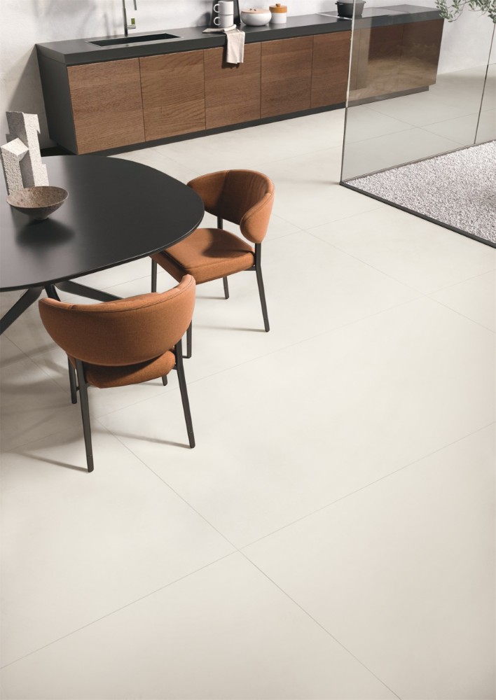 Bề mặt Honed (bán mài) mang đến cảm giác mịn màng, tự nhiên hơn so với gạch bóng kính, hạn chế trơn trượt và tạo sự thoải mái khi sử dụng trong sinh hoạt hàng ngày. Chính sự tinh giản trong họa tiết đã giúp mẫu gạch này dễ dàng phối hợp với nhiều phong cách nội thất khác nhau, từ tối giản, Scandinavian đến hiện đại hay tân cổ điển.