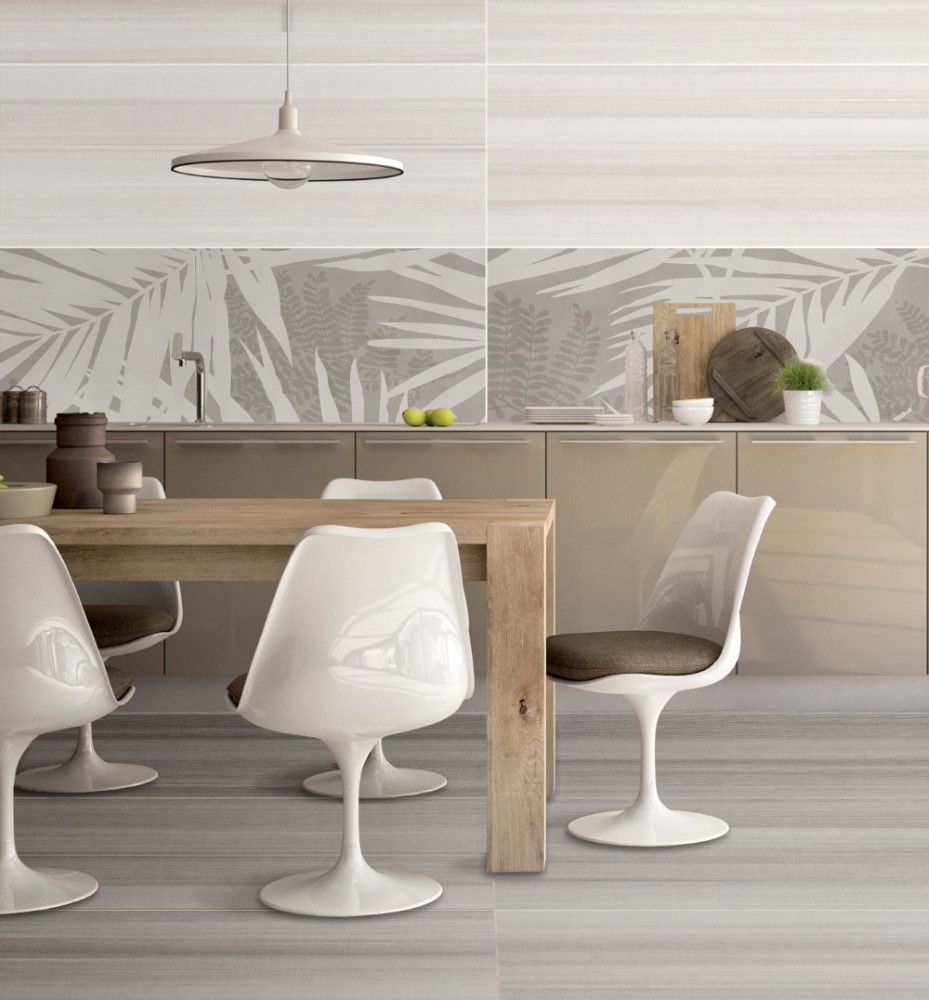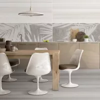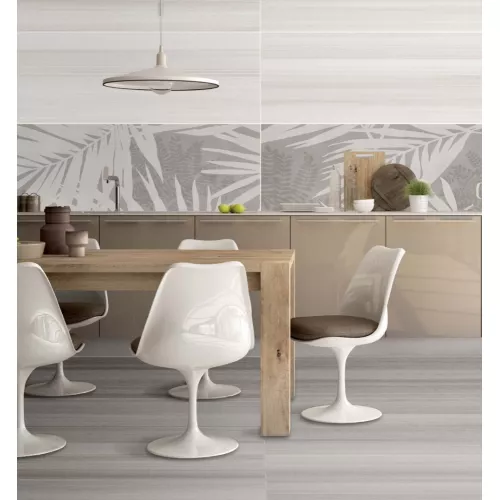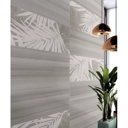 Gạch Trung Quốc HLTQ38005EL sở hữu tông nền xám nhạt chủ đạo, kết hợp hoa văn lá nhiệt đới màu trắng, tạo hiệu ứng thị giác thanh thoát, nhẹ nhàng thích hợp cho những công trình như trang trí mảng tưởng nghệ thuật, ốp tường quán cafe, spa, phòng khách, nhà tắm, phòng ngủ,...
