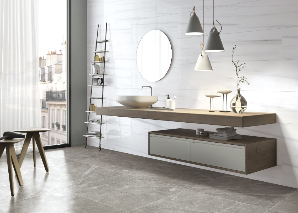 Ở phòng khách, HLTQ612024EL có thể làm mảng ốp chính sau kệ TV hoặc sofa – nơi ánh sáng ban ngày chiếu vào sẽ làm nổi rõ từng lớp vân như tranh thủy mặc. Trong phòng tắm, sự sạch sẽ của sắc trắng kết hợp với ánh đèn vàng sẽ tạo cảm giác như đang bước vào một khách sạn 5 sao, mỗi ngày.
