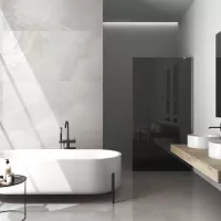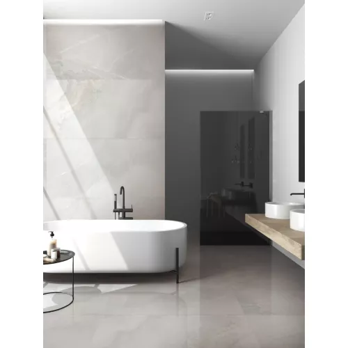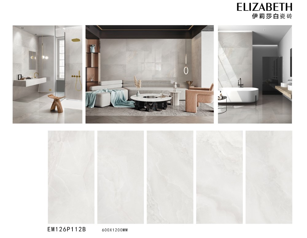 Gạch Trung Quốc HLTQ612028EL gây ấn tượng bởi gam màu trắng kem pha ánh xám rất dịu mắt, gần như tiệp màu với đá onyx tự nhiên. Bề mặt gạch được thiết kế với những đường vân mờ loang nhẹ, tinh tế như mây trôi, tạo cảm giác mềm mại và sang trọng, hoàn toàn không bị khô cứng hay đơn điệu như một số mẫu gạch trắng khác.