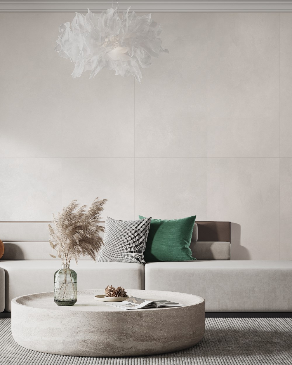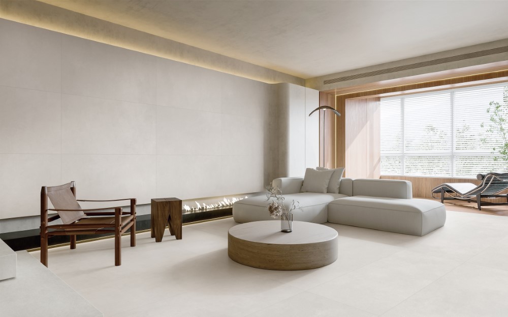 Không phải loại gạch nào cũng tạo được cảm giác êm dịu khi nhìn từ xa và cả khi chạm tay thật gần. HLTQ612045EL làm được điều đó. Sự tinh tế đến từ cách gạch “giấu” đi vân, thay vì phô bày rõ ràng. Tông be mịn, họa tiết xi măng mờ nhẹ và bề mặt matt khiến không gian vừa hiện đại, vừa có một chút hoài cổ – như một căn phòng tràn nắng sáng sớm, im lặng và đủ đầy.