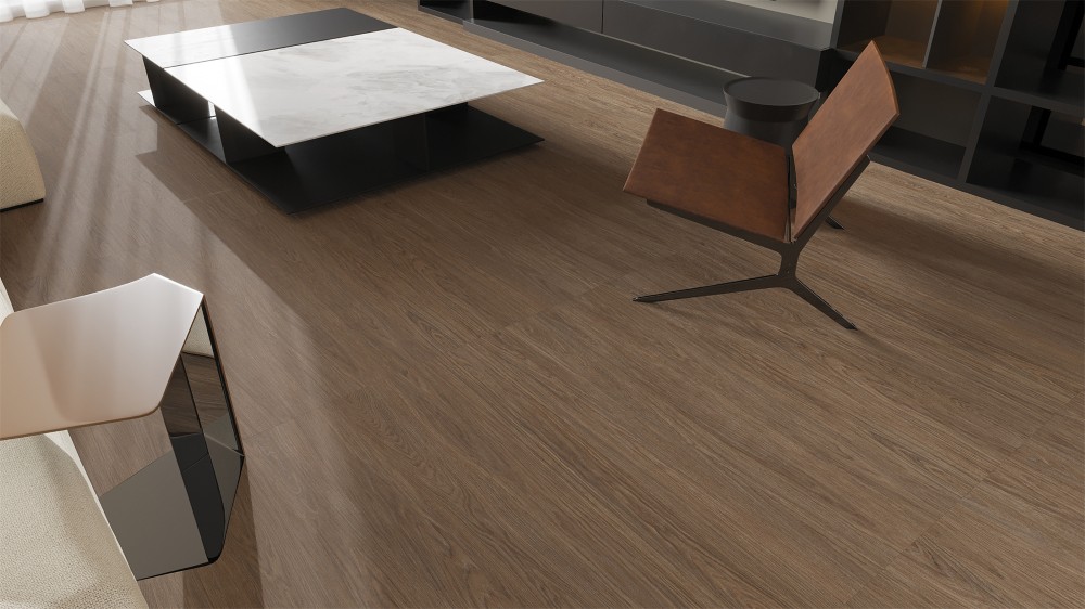 Gạch Trung Quốc HLTQ612103EL sở hữu thiết kế giả gỗ màu nâu đậm, mang lại cảm giác ấm cúng, sang trọng và gần gũi với thiên nhiên. Các đường vân gỗ tự nhiên được tái hiện tinh tế, chân thật, giúp không gian vừa có chiều sâu vừa giữ được nét mộc mạc.