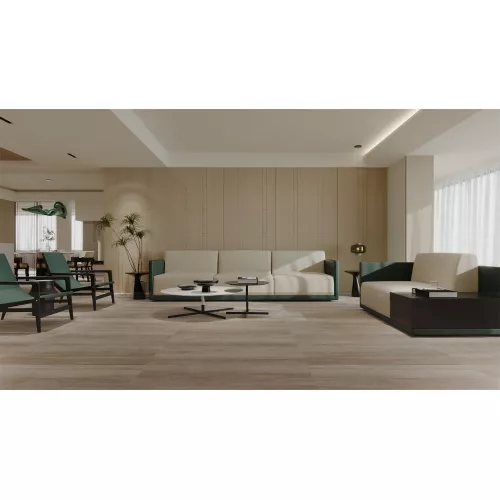 Gạch Trung Quốc HLTQ612106EL mang thiết kế giả gỗ hiện đại với tông màu nâu sáng nhẹ nhàng, tạo cảm giác ấm áp và tự nhiên cho không gian. Những đường vân gỗ tinh tế được tái hiện rõ nét, đem lại vẻ đẹp mộc mạc nhưng không kém phần sang trọng.