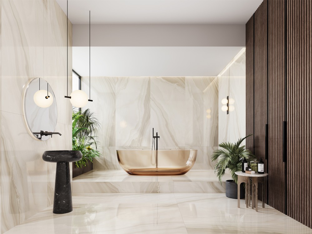 Kích thước 90x180 cm mang đến cảm giác rộng rãi, thoáng đãng, phù hợp để ốp lát ở phòng khách, sảnh lớn, biệt thự, khách sạn hay trung tâm thương mại cao cấp.