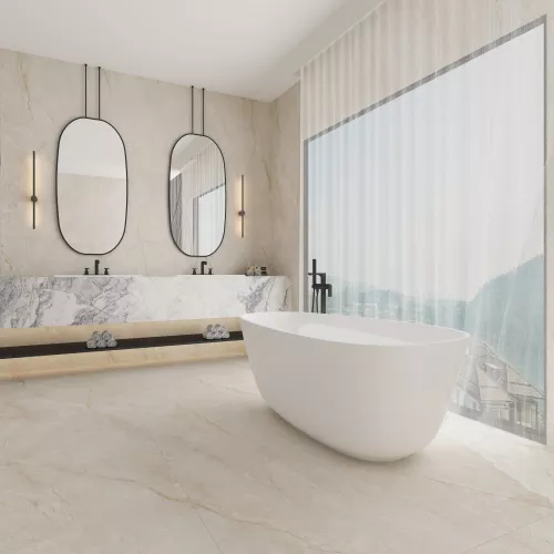 Kích thước lớn 90x180 cm giúp từng đường vân trở nên nổi bật, đồng thời tạo hiệu ứng liền mạch, mở rộng không gian sống. Đây là lựa chọn lý tưởng cho phòng khách, phòng ngủ hay các công trình cần sự sang trọng tinh tế.