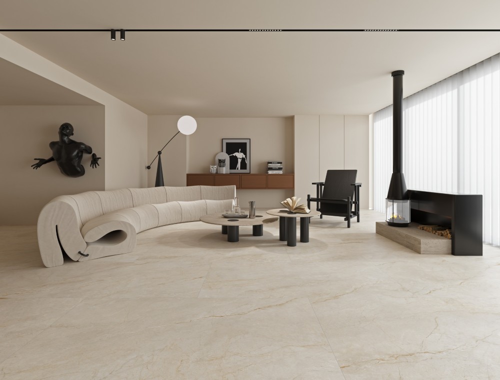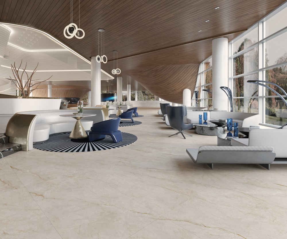 Gạch Trung Quốc HLTQ918070EL gây ấn tượng với gam be sáng nhẹ nhàng, kết hợp cùng đường vân đá tự nhiên mềm mại, mang lại cảm giác ấm áp và thoáng đãng cho không gian.