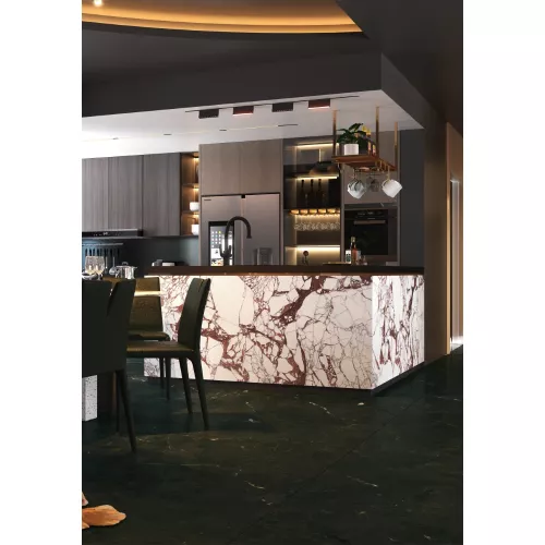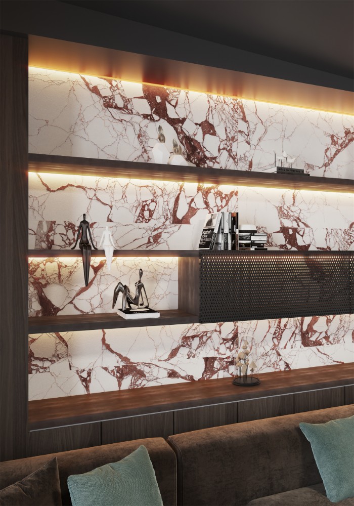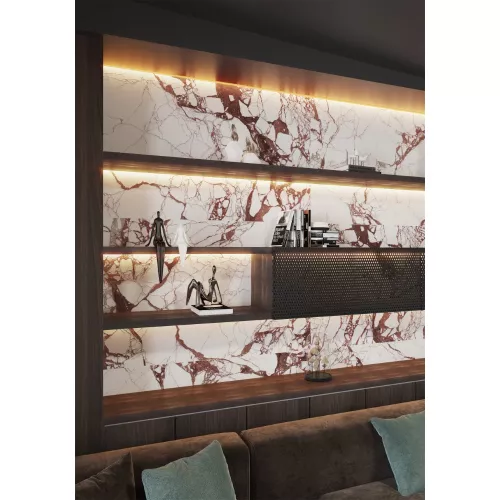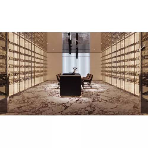Gạch Trung Quốc HLTQ918076EL mang phong cách vân đá tự nhiên đầy ấn tượng, nổi bật với nền trắng sáng tinh tế kết hợp các đường vân nâu đỏ mạnh mẽ và độc đáo. Sự tương phản hài hòa giữa gam màu trắng tinh khôi và các mảng vân gãy tự nhiên tạo nên chiều sâu, cảm giác chân thực như đá marble cao cấp.