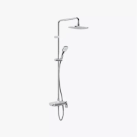 Bộ trộn nước dạng hộp có thể tận dụng như kệ để xà phòng, dầu gội hoặc sữa tắm, giúp không gian gọn gàng, tiện lợi hơn.